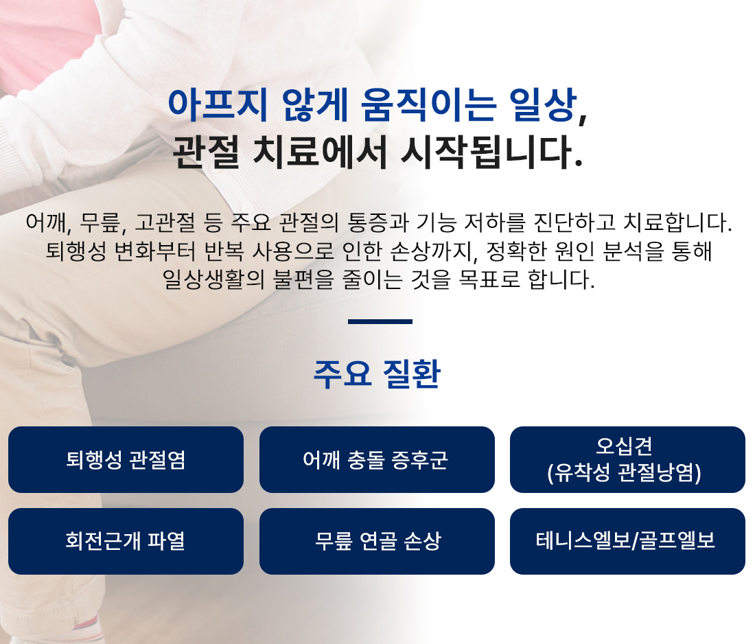 다양한 관절 질환을 치료해 왔습니다.