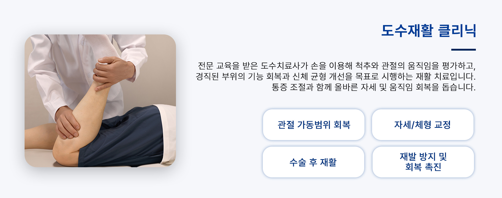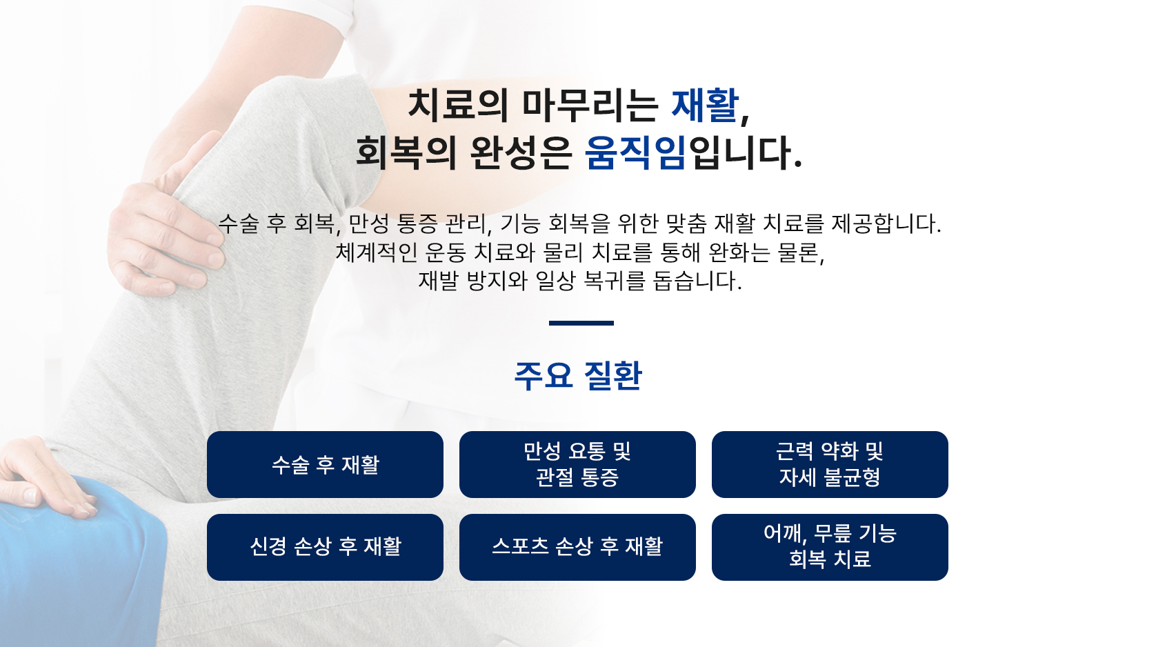 회복과 일상 복귀를 돕는 치료를 제공합니다.