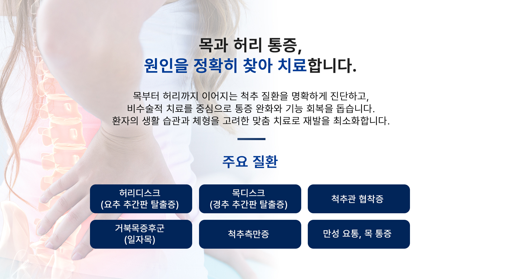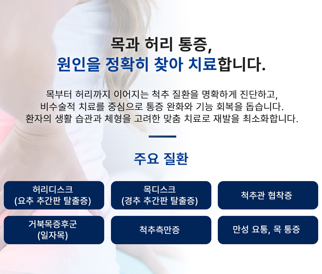 환자의 상태에 맞춘 정밀한 비수술 치료로 통증은 줄이고,