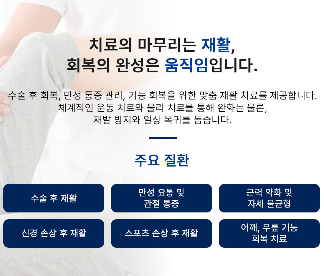 회복과 일상 복귀를 돕는 치료를 제공합니다.